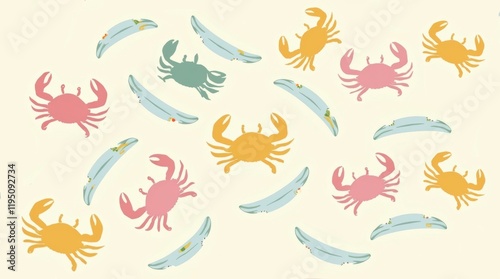 Vibrant crab pattern background marine life illustration coastal environment playful conceptual design