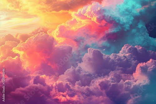 Vibrant cumulus clouds dance in the sunset sky, a breathtaking display of nature's canvas