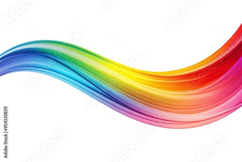 Vibrant, curved, transparent swoosh line graphic in various bright colors, isolated on a white background, ideal for