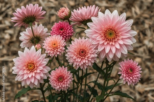 Vibrant Dahlia and Chrysanthemum Blend Against a Bright Pink Backdrop, Complete Coverage Natural Design