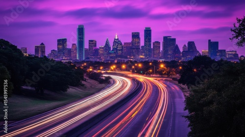 Vibrant Dallas Skyline Under a Colorful Evening Sky at Dusk