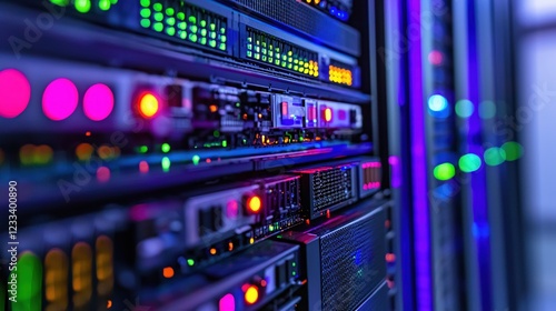 Vibrant Data Center Server Room Technology Closeup