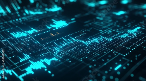 Vibrant Data Visualization: Financial and Technological Analytics with Neon Grid Highlights