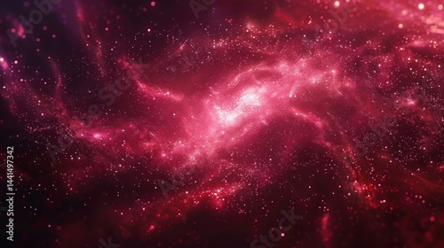 Vibrant deep space nebula with glowing pink and red clouds of cosmic dust illuminated by countless bright stars creating a sense of vastness and mystery