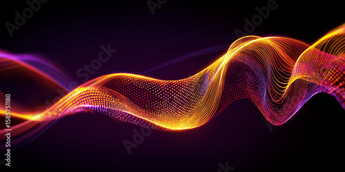 Vibrant digital art illustration features colorful light streaks forming dynamic wave patterns against dark background, creating sense of motion and energy