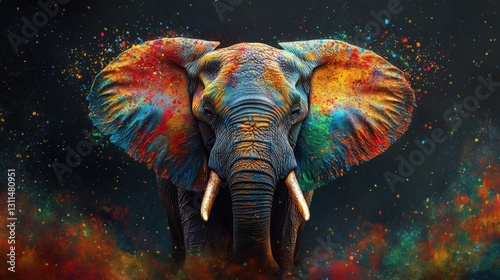 Vibrant digital art showcasing an elephant's journey—rich hues and intricate designs weave a captivating narrative through its textured form, highlighting its majestic essence