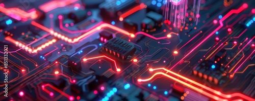 Vibrant digital composition featuring bright and dynamic tech elements with neon accents, perfect for futuristic designs and technology concepts