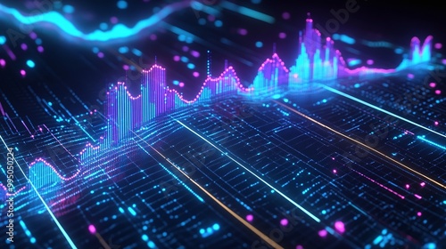 Vibrant digital data visualization with colorful lines and peaks on a dark background, representing data analytics and technology.