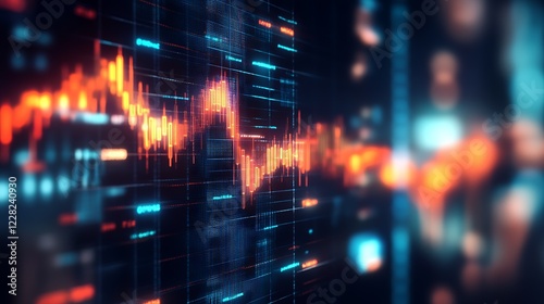 Vibrant Digital Financial Market Graph with Orange Light Effects on Dark Background : Generative AI