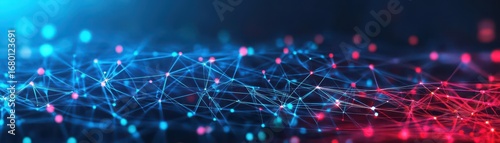 Vibrant digital network with interconnected glowing lines and nodes representing technology, communication, and data flow in a futuristic abstract background