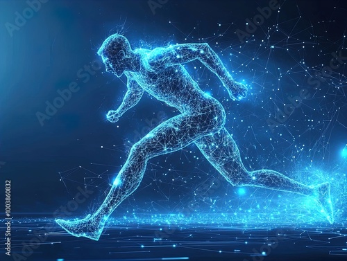 Vibrant Digital Runner Poster: Capturing the Dynamic Fusion of Sports and Technology Against a Deep Space Backdrop – Perfect for Sporty Interiors!