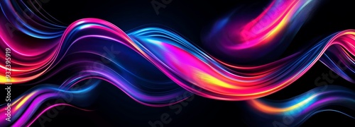 Vibrant dynamic abstract energetic flow of wavy color patterns representing stylish digital technology energy waves on a black background. Generative AI