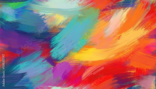 Vibrant, Dynamic Abstract Pattern Brushed Painted Textile Backdrop with Expressive Strokes and Rich Colors Ideal for Modern Designs