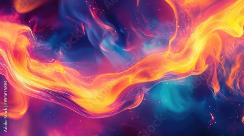 Vibrant dynamic flame effects, using innovative digital art techniques to create a bold abstract design with bright, striking colors
