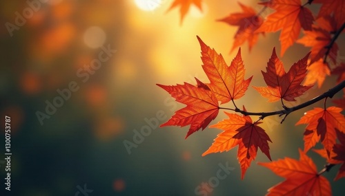 Vibrant fall leaves swirl, branches silhouetted against bokeh sky , yellow, golden