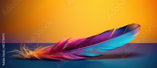 Vibrant feather with a colorful backdrop in a vivid image with copy space.