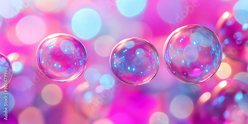 Vibrant Floating Soap Bubbles with Colorful Bokeh Background