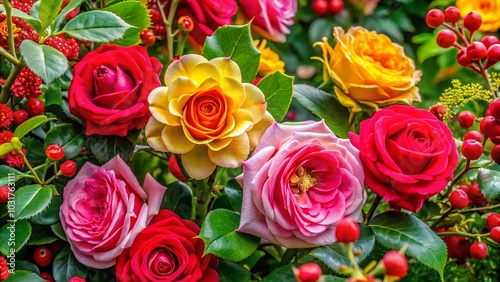 Vibrant Floral Display: A Colorful Garden of Roses and Seasonal Blooms