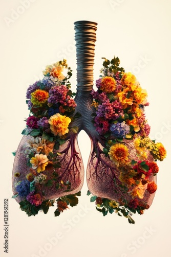 Vibrant flowers decorate the human chest, symbolizing life and growth.