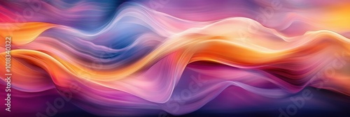Vibrant flowing wave design, dynamic color interplay, shimmering light effects, captivating abstract composition