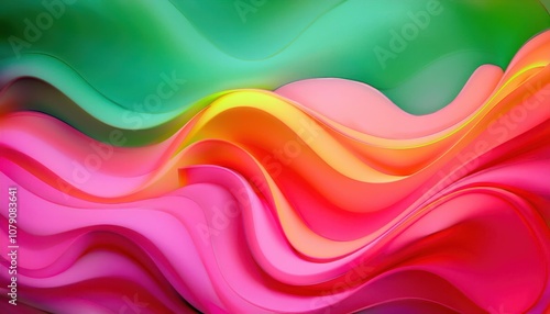 Vibrant Fluid Gradient Waves: Abstract 3D Render of Flowing Multicolor Layers in Pink, Orange, and Green Hues for Artistic Backgrounds, Modern Design Concepts, or Dynamic Wallpapers