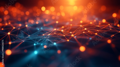 Vibrant Futuristic Digital Network Abstract Background with Glowing Connections and Lights