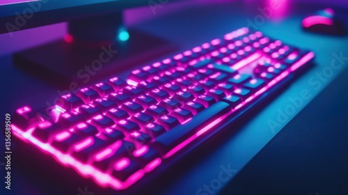 Vibrant Gaming Keyboard with Neon Lights in a Dark Environment