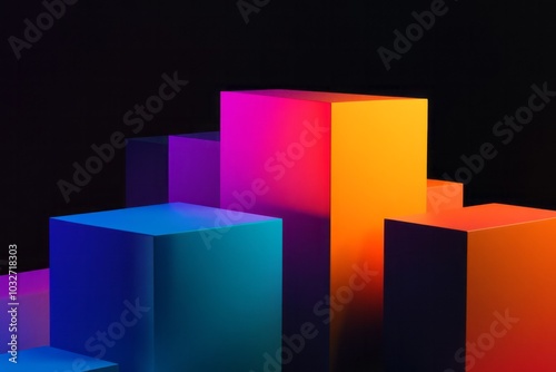 Vibrant Geometric Blocks on Dark Background