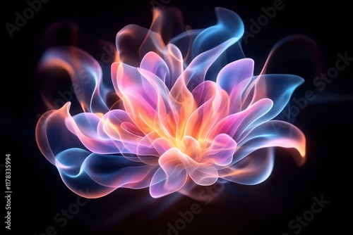 Vibrant, glowing abstract flower representation.