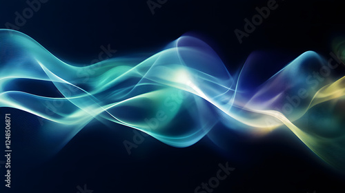 Vibrant, glowing waves form intricate patterns, casting an energetic and technological vibe in neon colors.