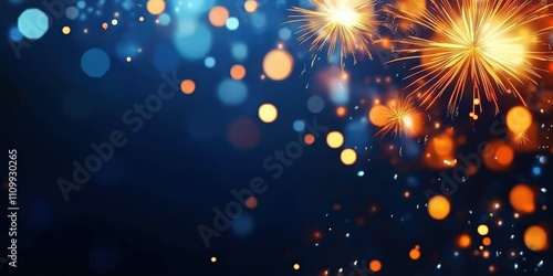 Vibrant Gold and Blue Fireworks with Bokeh Effect on New Year's Eve Celebrations Illuminating the Night Sky in a Stunning Display