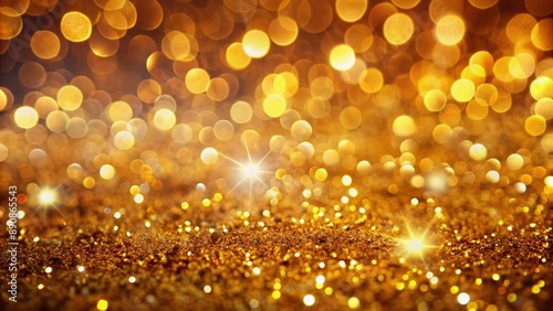 Vibrant gold glitter light bokeh background with warm golden tones and soft focus, perfect for Christmas and holiday-themed designs with ample copy space.