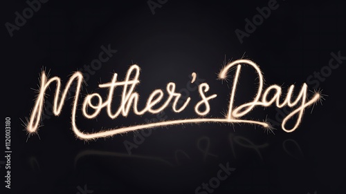 Vibrant Golden Script Text Effect for Mother’s Day on a Deep Black Background with Sparkler-Like Glow and Reflections