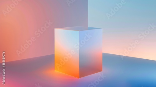 Vibrant Gradient Frosted Glass Cube Virtual Background with Blue, Orange, and White Tones - Modern Design Concept