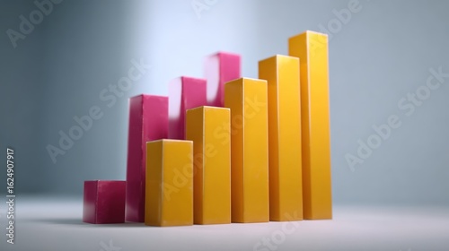 Vibrant Graph: A dynamic graph illustrates growth and progress through rising bars, with bold colors against a neutral backdrop, suggesting continuous development.