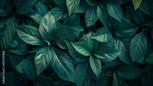 Vibrant Green Leaf Pattern on a Dark Background, Abstract Art for Home Decor, Wall Art, Advertisement, Graphic Design