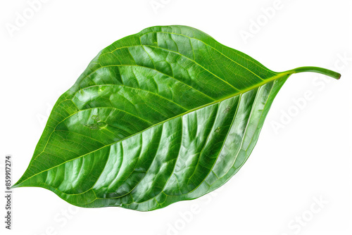 Vibrant green leaf with intricate vein patterns, symbolizing freshness and life, perfectly isolated on a white background.