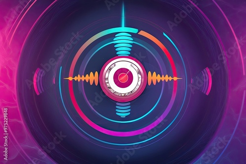 Vibrant Hemisphere Audio Pulse with Circular Emblem and Frequency Spiral Design