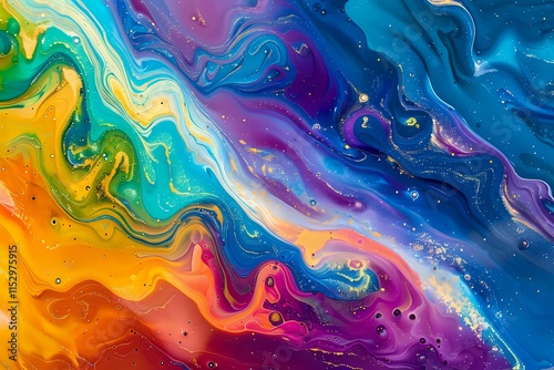 Vibrant Hues Intermingle:A mesmerizing display of swirling colors,creating an abstract masterpiece with gold accents;Fluid Acrylic Pouring Technique Showcases Dynamic Color Blending and Textural Depth