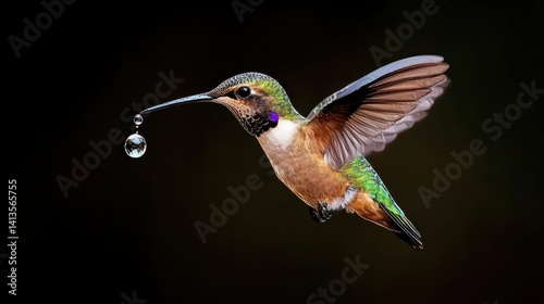 Vibrant Hummingbird with Long Beak Hovering Amidst Colorful Flowers