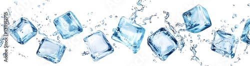 Vibrant Ice Cubes Tumbling through Water Creating a Splashing Scene : Generative AI