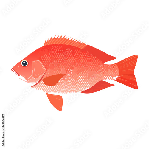 Vibrant Illustration of a Red Snapper Fish on a Black Background