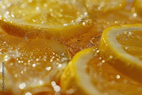 Vibrant Image of Close Up of Lemon Slices in a Glass of Lemonade