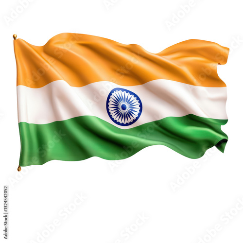 Vibrant indian flag displayed with pride featuring rich colors and symbols representing unity and national identity isolated on a white background.