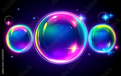 Vibrant iridescent orbs floating against a black backdrop, abstract design