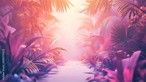 Vibrant jungle path surrounded by lush, colorful foliage.