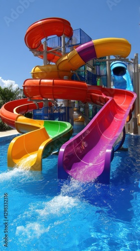 Vibrant Kids' Water Slide Adventure at a Fun Aquatic Park Featuring Colorful Slides and a Sparkling Pool
