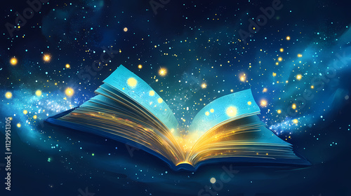 Vibrant learning journey on a dark blue background with illuminating sparks. Omnipresent. Illustration
