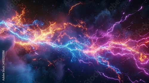 vibrant lightning strike with colorful energy discharge dynamic 3d rendering