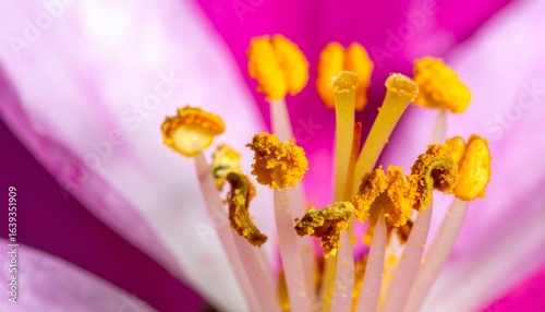 Vibrant Macro Image of Flower Stamens and Pistils with Pink Petals
